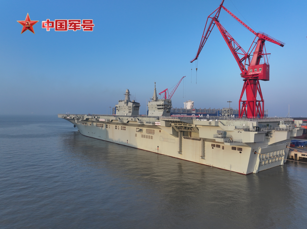 在五艘拖船的牽引下,四川艦離開滬東中華造船廠碼頭駛向相關(guān)海域。四川艦舷號為51,是海軍新一代兩棲攻擊艦,滿載排水量4萬余噸,設(shè)置雙艦島式上層建筑和全縱通飛行甲板,創(chuàng)新應(yīng)用電磁彈射和阻攔技術(shù),可搭載固定翼飛機、直升機、兩棲裝備等。